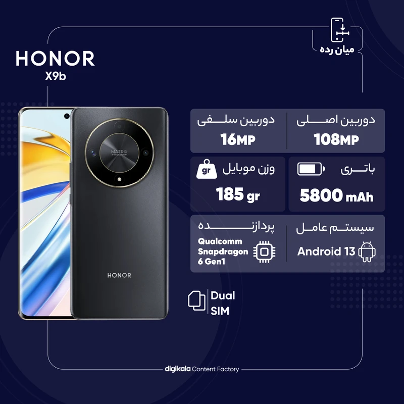 کارکرده موبایل هانر honor X9B 5G 256G رام ۱۲Honor X9B 5G 256G ram 12